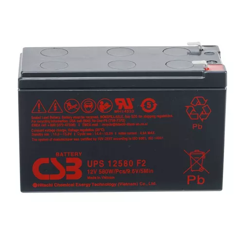 Аккумуляторные батареи CSB серии UPS - серия батарей со сроком службы до 5 лет (или до 260 циклов до 100% разряда при работе в циклическом режиме), высокой мощности при малых массогабаритных показателях. Как и батареи других серий CSB они являются необслуживаемыми - выполнены по AGM–технологии, герметизированы - работоспособны в любом положении, безопасны в эксплуатации, имеют низкий уровень саморазряда, высоконадежны. Используются в качестве резервного питания промышленного оборудования, источниках бесперебойного питания (UPS), системах охранной и пожарной сигнализации, портативном измерительном оборудовании, электроинструментах, и другом оборудовании.