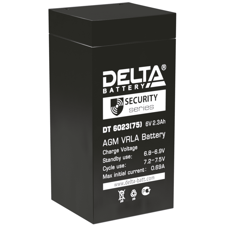 Характеристики Аккумулятор Delta DT 6023 (75мм)