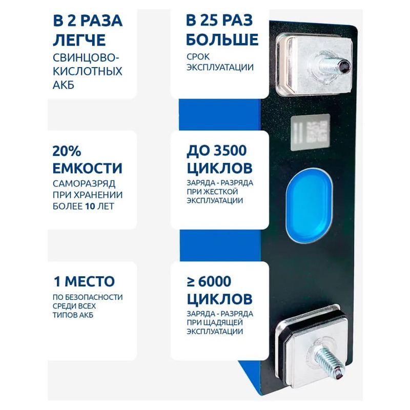 - Высокая плотность энергии по сравнению со свинцово-кислотными АКБ
