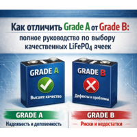 Для Grade A LiFePO4 часто указывают ресурс порядка 2500–4000 циклов при режиме около 1C (до заданного остатка емкости, например 80%). Перед покупкой стоит уточнить условия теста: температура, глубина разряда (DoD), верхнее напряжение заряда и критерий окончания ресурса.